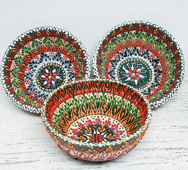 HandPainted Ceramic Bowls. 3" diameter by 1 1/2" depth. SET OF 3