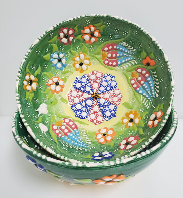 HANDMADE - These ethnic ceramic bowls are handcrafted. You can feel the authentic texture of the hand painted designs