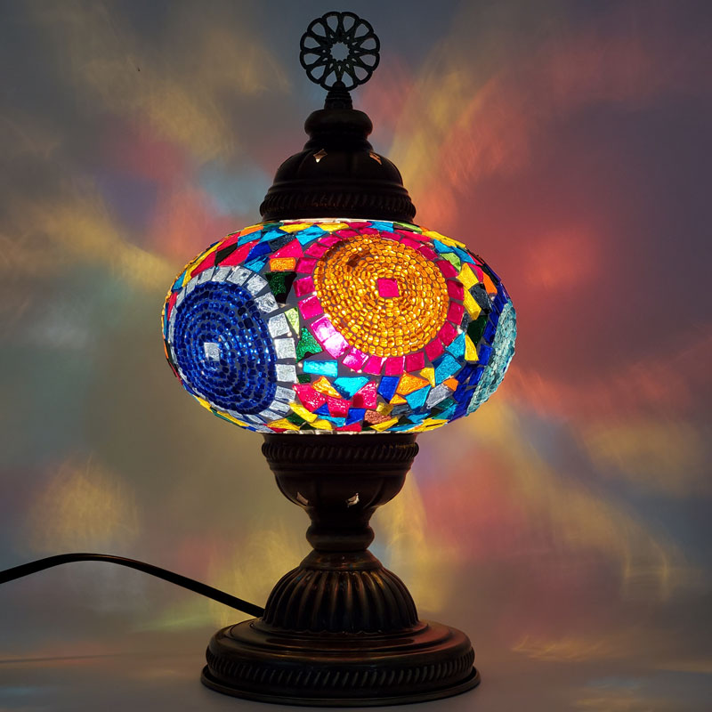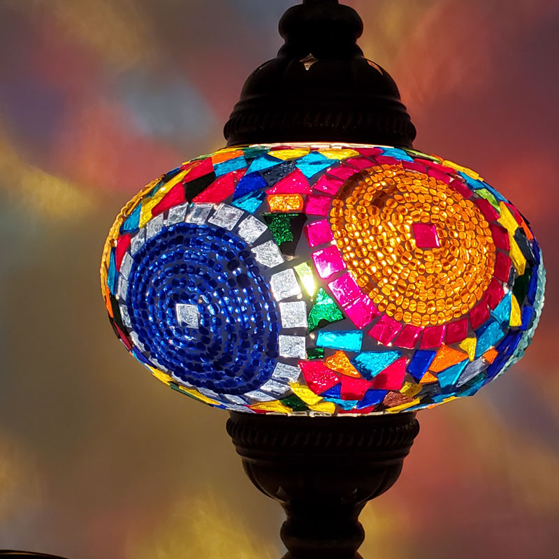 Handmade by skilled artisans in Turkey where centuries old traditions continue to this very day. Each Mosaic Glass lamp is intricately handmade by Turkish artisans by cutting and placing each recycled glass mosaic piece one by one.